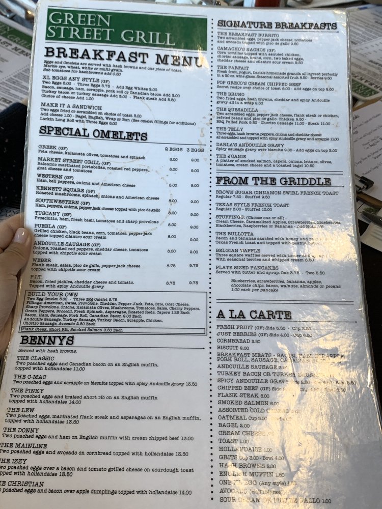 Many regulars, like Gabrielle P., rave about the comforting, quick service and unique coffee presentation, adding a personal touch to every visit. Come savor deliciousness at Green Street Grill—where quality food meets a welcoming vibe!